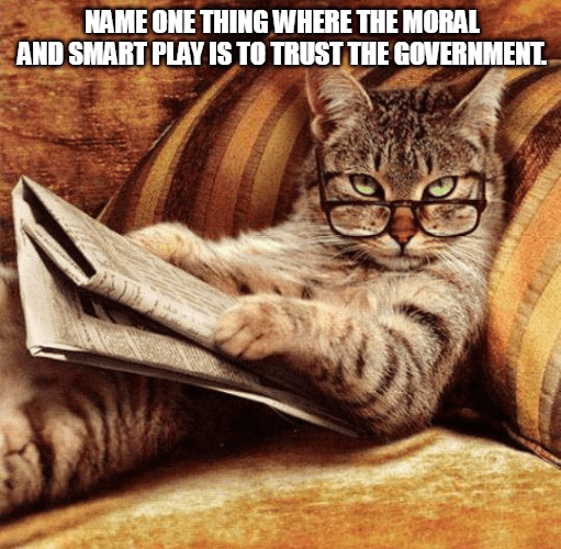 In the meantime, focus on food, water, shelter, medicinal needs, and a means of protection. The LAST thing anybody needs is to become reliant on this Clown Show commonly known as “government”. They do NOT have your best interests at heart. That is YOUR job.